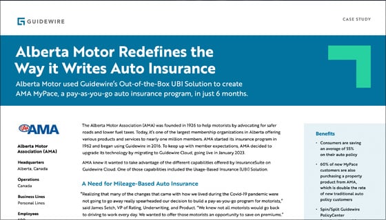 Formed in 1926, Alberta Motor Association (AMA) was established to make things better for motorists, lobbying for safer roads and lower fuel taxes. Now one of the largest membership organizations in Alberta, AMA offers a variety of products and services to help its nearly one million members protect the things they care about most. In 1962, AMA launched its insurance program and in 2016, it became a Guidewire InsuranceSuite, DataHub, InfoCenter, and CustomerEngage customer.