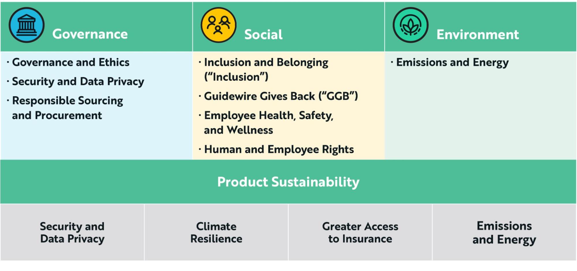 As part of our fiscal year 2023 materiality assessment, we validated the three pillars established in our initial 2020 assessment and added programs under each pillar. Additionally, we continued to evolve our product sustainability strategy, which spans all three pillars and connects to programs in each pillar. We also developed a three-year plan with an external consultant that is enabling us to mature our sustainability program, particularly in the topic areas that our internal and external stakeholders prioritized during our materiality assessment process. Our three-year roadmap includes topic-aligned actions that are designed to support Guidewire’s competitiveness and long-term business prospects.