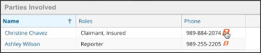 To begin a text conversation, the adjuster clicks on the “z” that appears beside every mobile number in the ClaimCenter file.