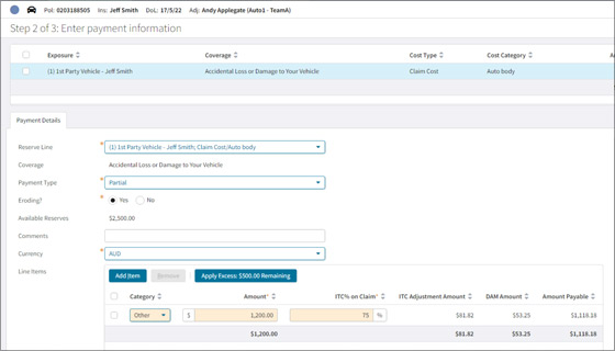 Regulatory, standards, and tax content: We’ve implemented Australian Goods and Services Tax in Elysian to support claim payments. This includes tax registration on accounts and policies in the policy administration suite, PolicyCenter as well as calculations for IAM and DAM on claim payments in the claim management center, ClaimCenter. The calculations are implemented for acquisitions and settlements for insured and third parties.